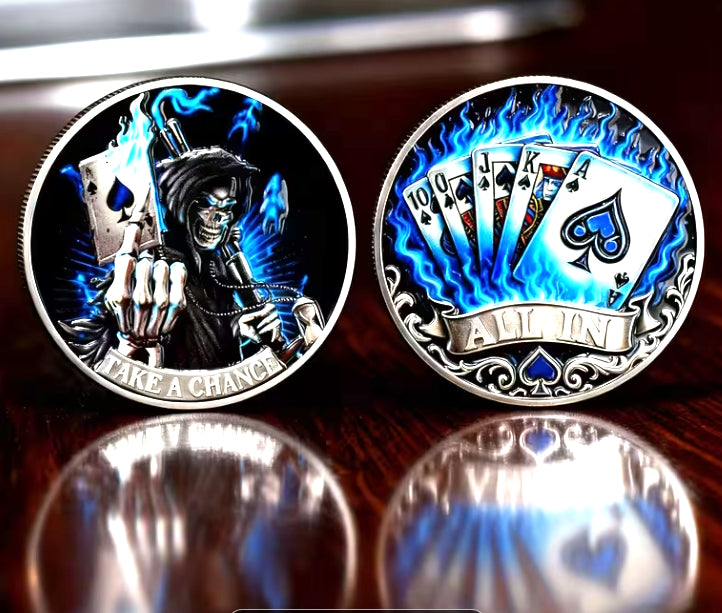 חדש, כפתור ALL IN עגול מתכתי מיוחד ומקורי !!!