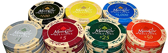 פוקר ז'יטונים מונטה קרלו דגם מיליון חימר 13.5 גרם CLAY !!!